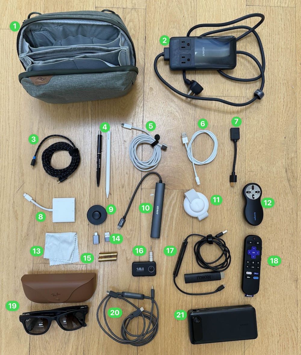 Noah here. I’m back on the road, quite a bit more than I have been the last few years, and with that have been working on optimizing my travel setup. Specifically, I find everything is a whole lot more chill if I have cords and toiletries ready to go (most anything else I forget can easily be picked up in whatever city I’m in).